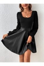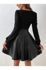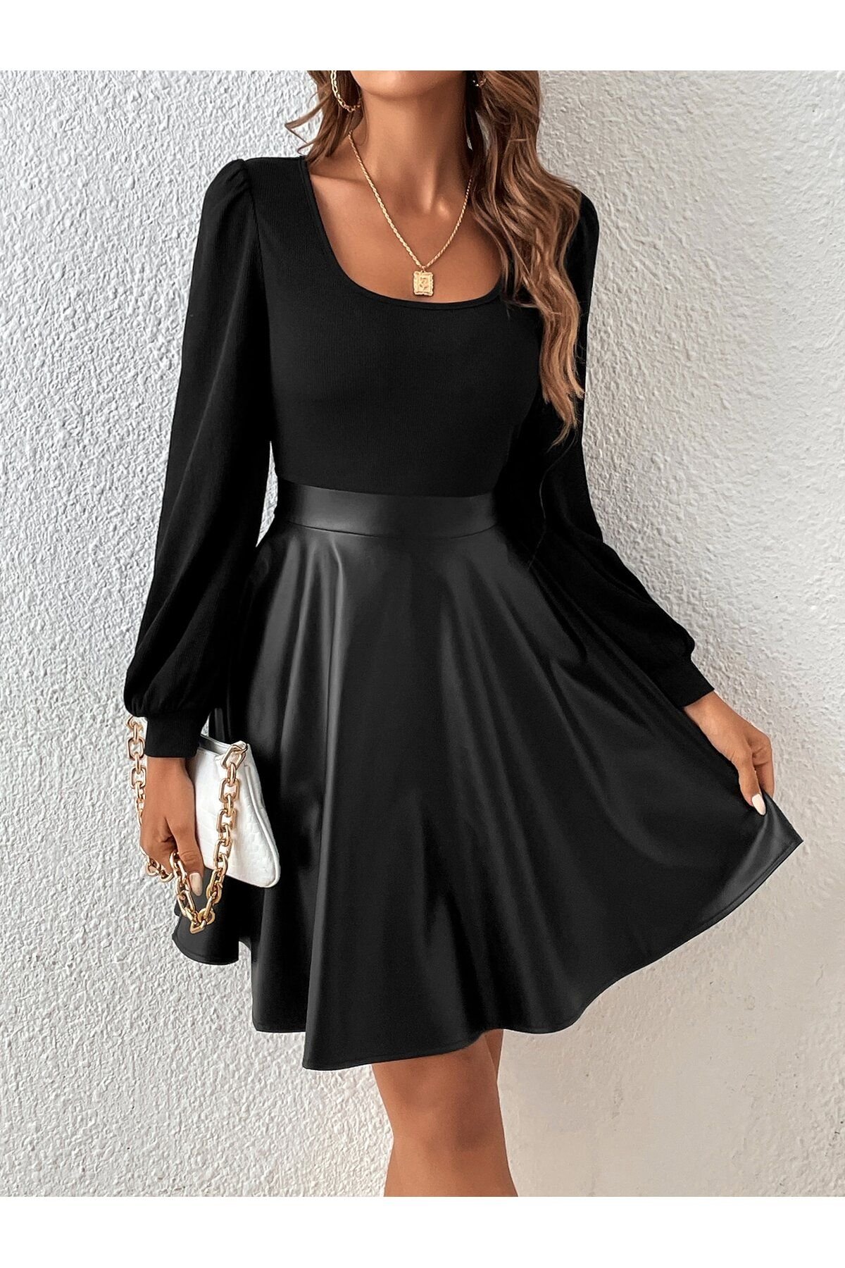 Deri ve Ribana Üst ile Şık Uzun Kollu Bluz (Kemersiz) için 1 değerlendirme
