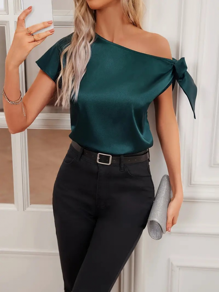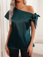 Kadın Kısa Kollu Omuzu Düğümlü Saten Bluz